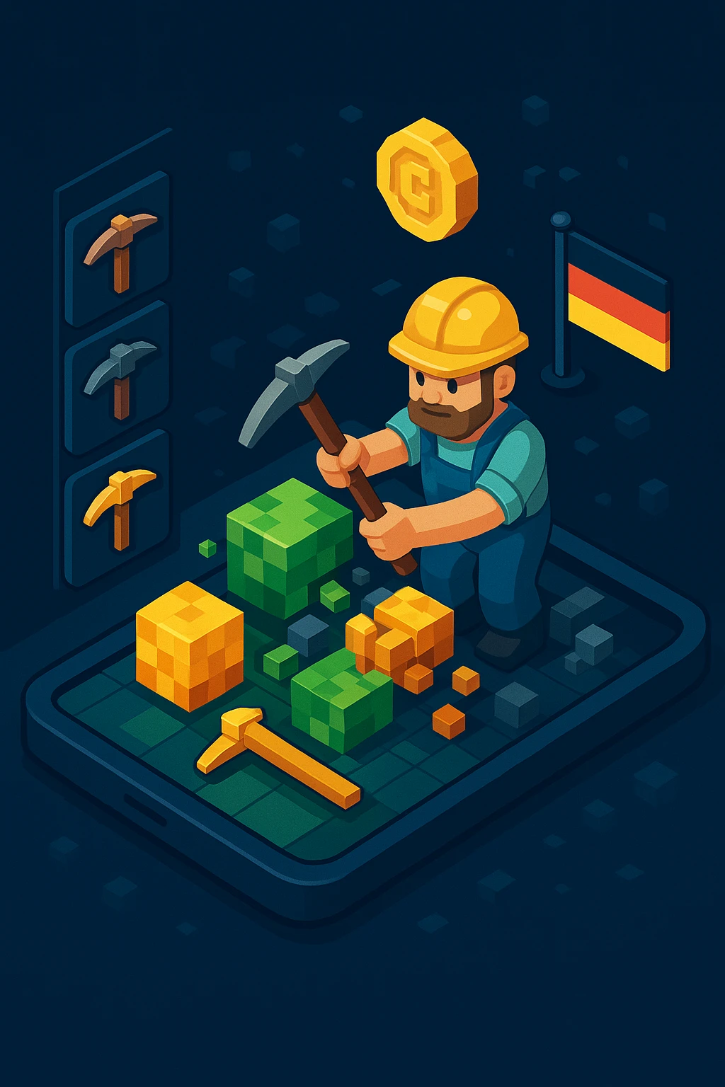 Das Spielprinzip weicht stark von herkömmlichen Automaten ab, die man sonst aus vielen verschiedenen digitalen Spielhallen kennt. Anstatt rotierender Walzen steht das gezielte Zertrümmern von Pixel-Blöcken zentral als Mittelpunkt des gesamten spielerischen Geschehens. Dieser Prozess simuliert den Abbau wertvoller Erze direkt auf dem heimischen Bildschirm oder dem handlichen Smartphone oder Tablet des jeweiligen Nutzers. Jede neue Runde beginnt mit der strategischen Wahl des passenden Werkzeugs für den Abbau. Die einfache hölzerne Spitzhacke bricht bereits nach nur einem einzigen Einsatz am Block. Steinwerkzeuge halten immerhin zwei Schläge durch, während die glänzenden Goldvarianten drei Treffer auf das harte Material der Blöcke erlauben.
